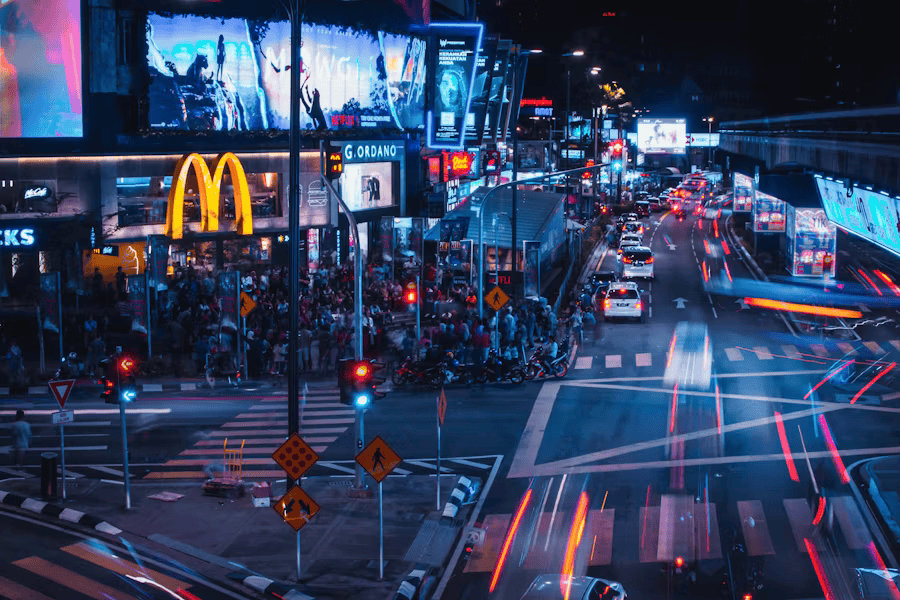 走在吉隆坡最繁华的武吉免登商业街区,看游客们拿着蜜雪冰城的冰淇淋争相在薯条斑马线前拍照、看霸王茶姬门口排起的长队、看裹着黑色头巾的年轻穆斯林少女三三两两嬉笑着走进亮黄色的独栋KKV、看中国品牌成为这里的新地标……一时间五味陈杂。