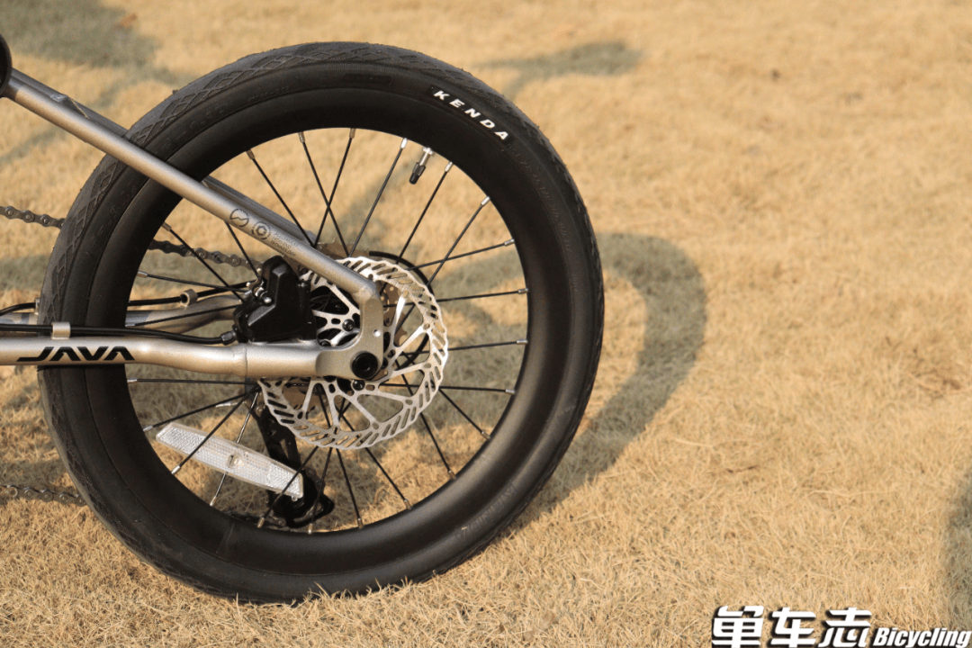 ▲前后轮都是筒轴,16吋的铝合金轮组+建大轮胎。