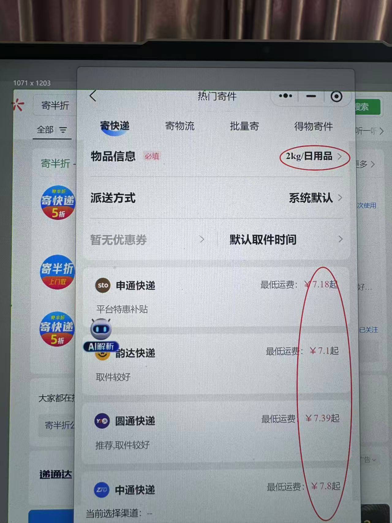 同样寄件,单独用官方券、平台券,和用寄半折券 + 企业协议价,差价非常明显,以下为 2026 年跨省寄件(北京→广州)实测价格,直观感受寄半折的价格优势,所有价格均为城区配送、免费上门取件: