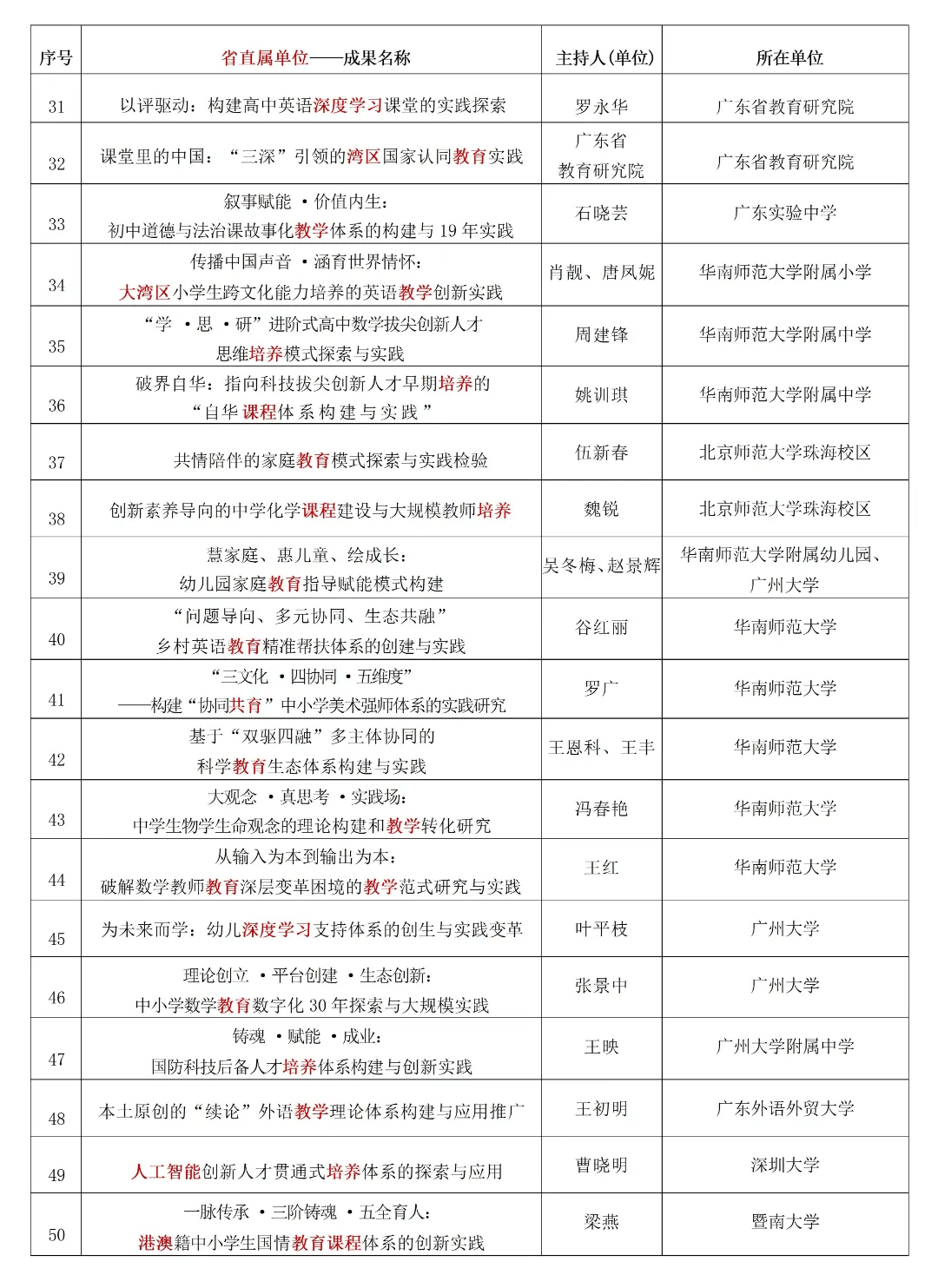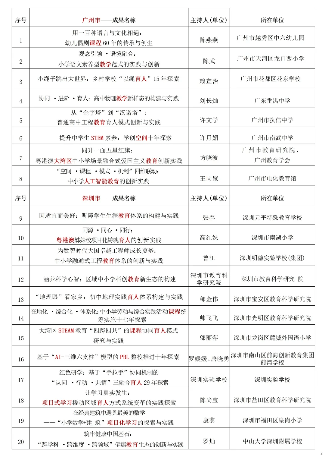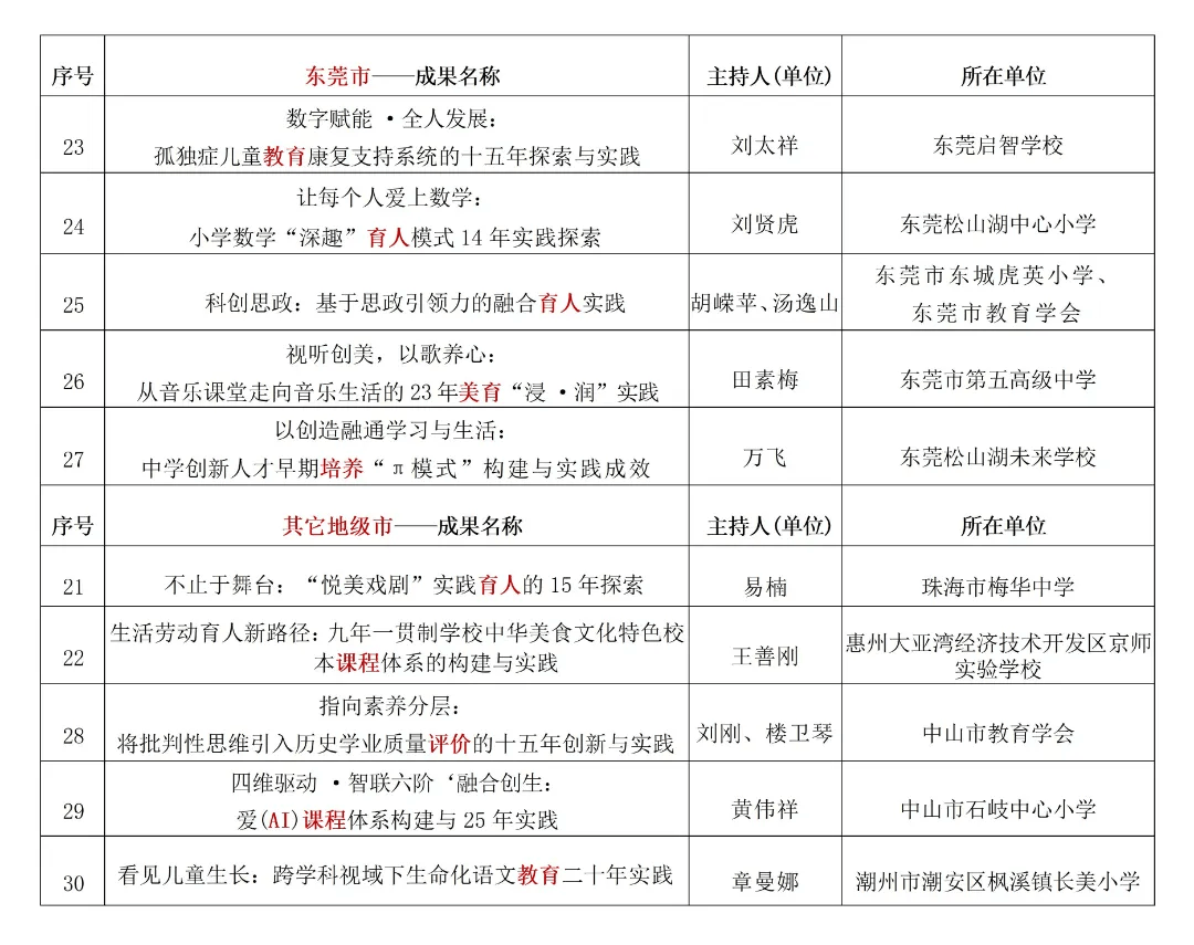 广东省2025基础教育教学成果特等奖获奖项目名单如下: