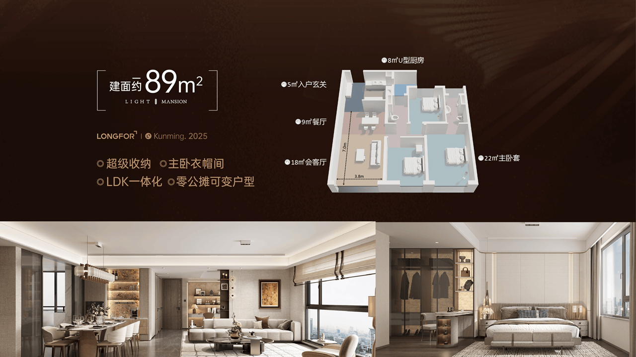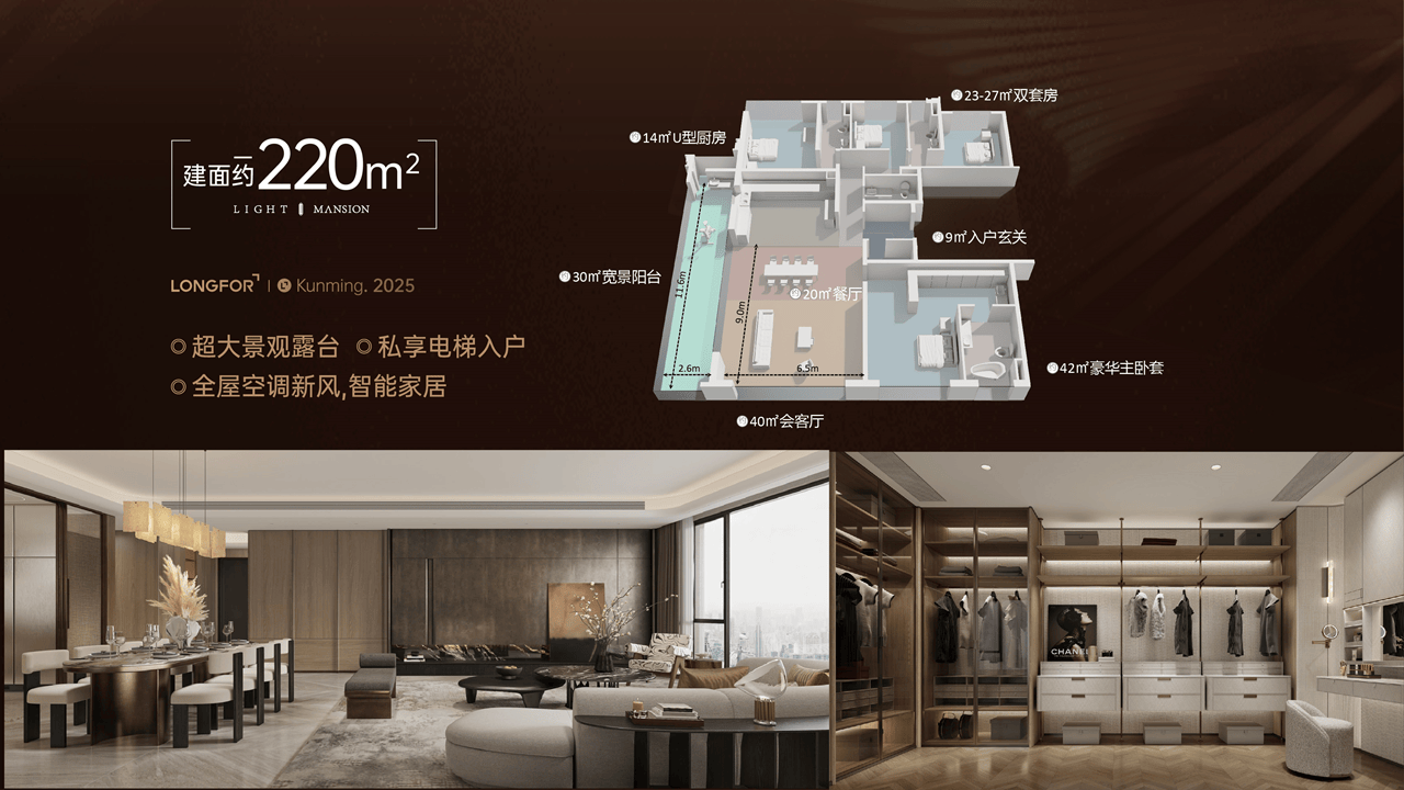 遴选全球一线奢装品牌,比肩10万+豪宅规制,188项人性化精装细节、高定奢华收纳等交标。
