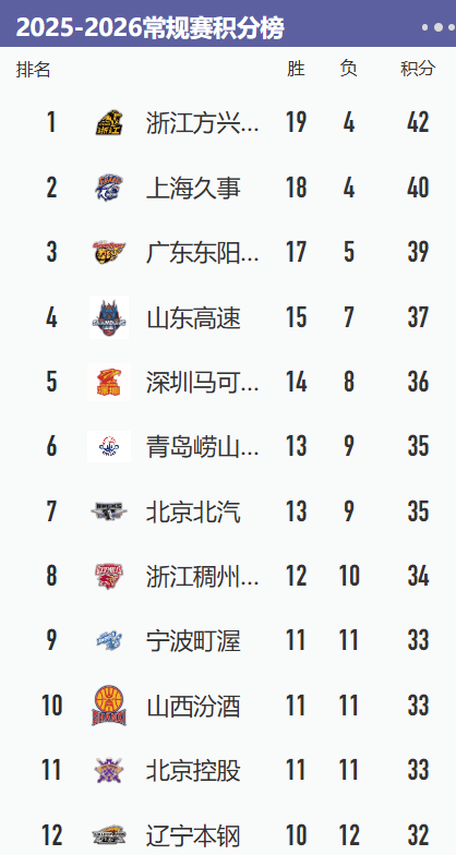 排在第8名的是浙江队,他们的战绩为12胜10负。而积分榜第9名则是宁波队,他们的战绩为11胜11负,胜率刚好过半。第10名则是山西队,第11名是北控,这两队的战绩与宁波队一样,也是11胜11负,三队在战绩上形成连环套。而季后赛守门员的位置则属于四冠王辽宁队,他们的战绩为10胜12负。下一轮比赛收官战,如果他们能够顺利击败江苏队,球队的排名将有望进一步提升。