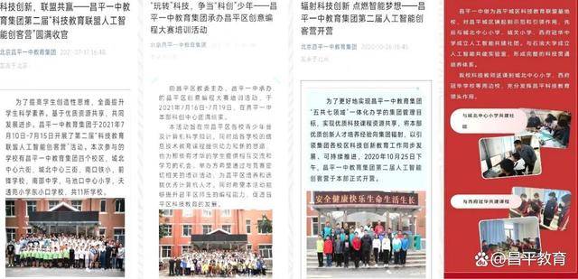 昌平一中已与12所小学、初中结为友好学校、科技盟校,优质课程、金牌项目以送课到校、共建科技社团、举办科技创客营、科技夏令营等方式,实现优质资源共享。年均授课60节,辐射全区2100人次,仅城区科技教育联盟夏令营就招生120人,完成授课9600人次。联合培养结硕果,已获国家级奖项9人次、市级奖项46人次。