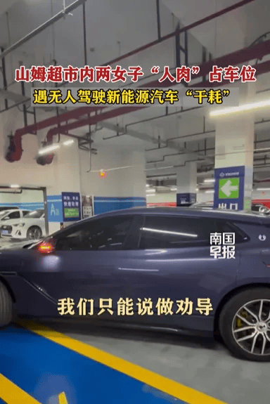 2月1日,目击者马女士称,两名女子站在空车位上占位,当时车位紧张,新能源汽车进入停车场后,车主开启自动泊车就下车了。