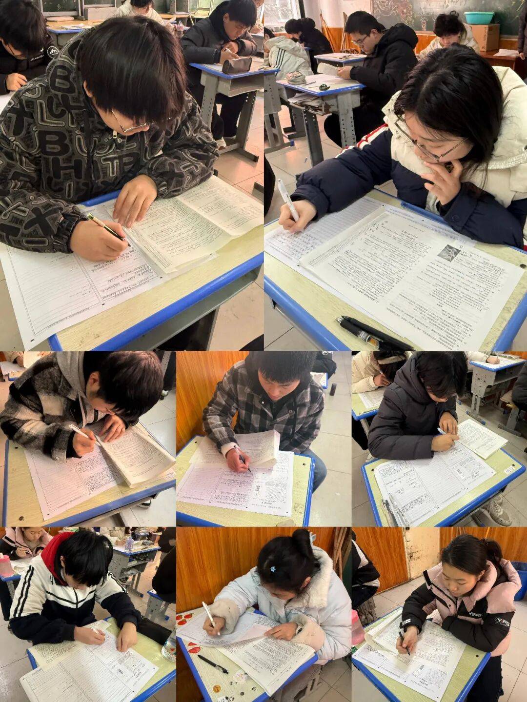 考场内,是另一番景象。沙沙的书写声如同春蚕食叶,清脆而密集。学生们时而凝神思考,眉头微蹙;时而豁然开朗,奋笔疾书。那份专注,仿佛将整个世界的喧嚣隔绝在外。学生细心审题 沉稳应对。规范答题的同时彰显了新世纪学子的素养。
