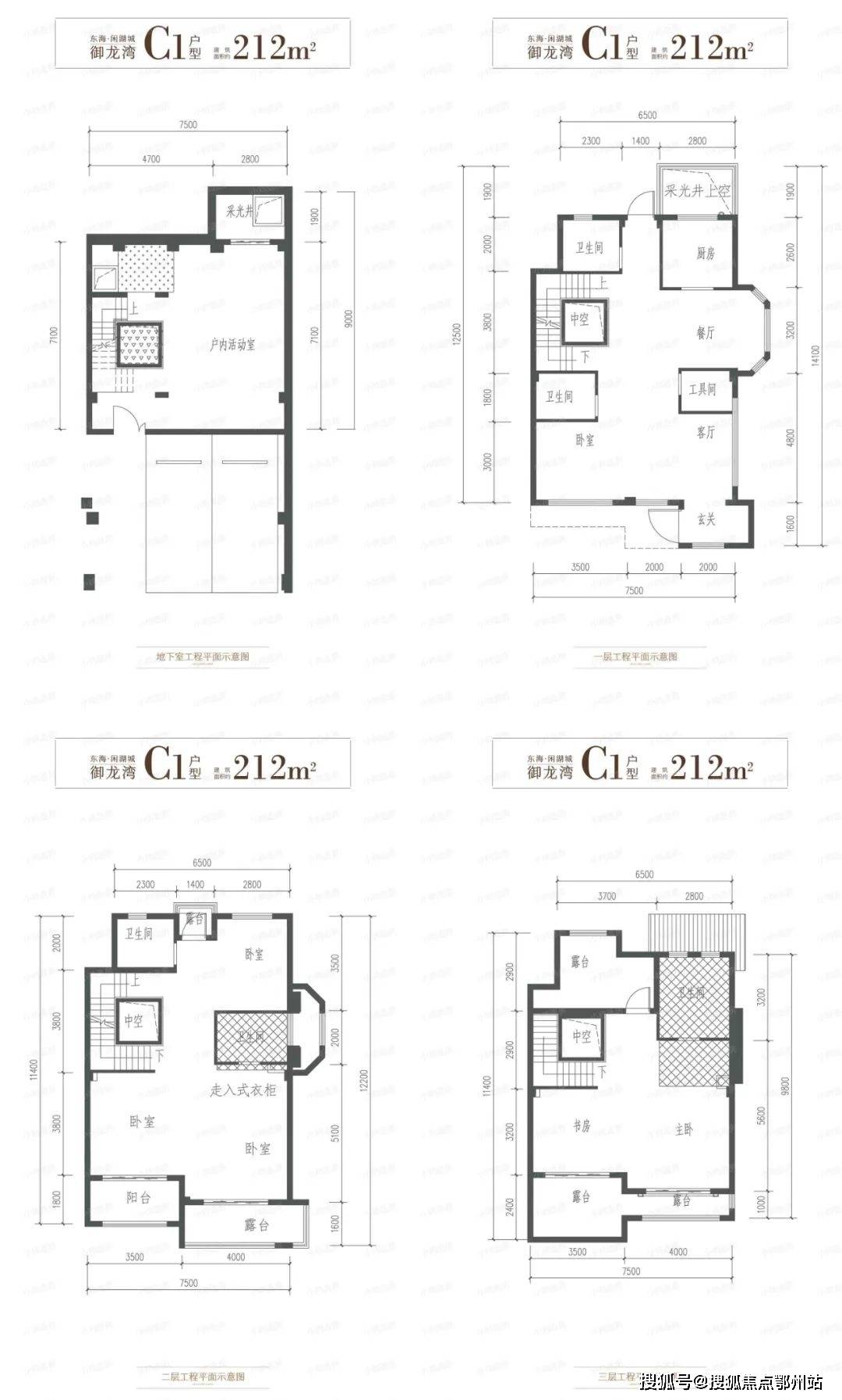 【户型面积】:约171㎡、约195㎡、约212㎡、约243㎡
