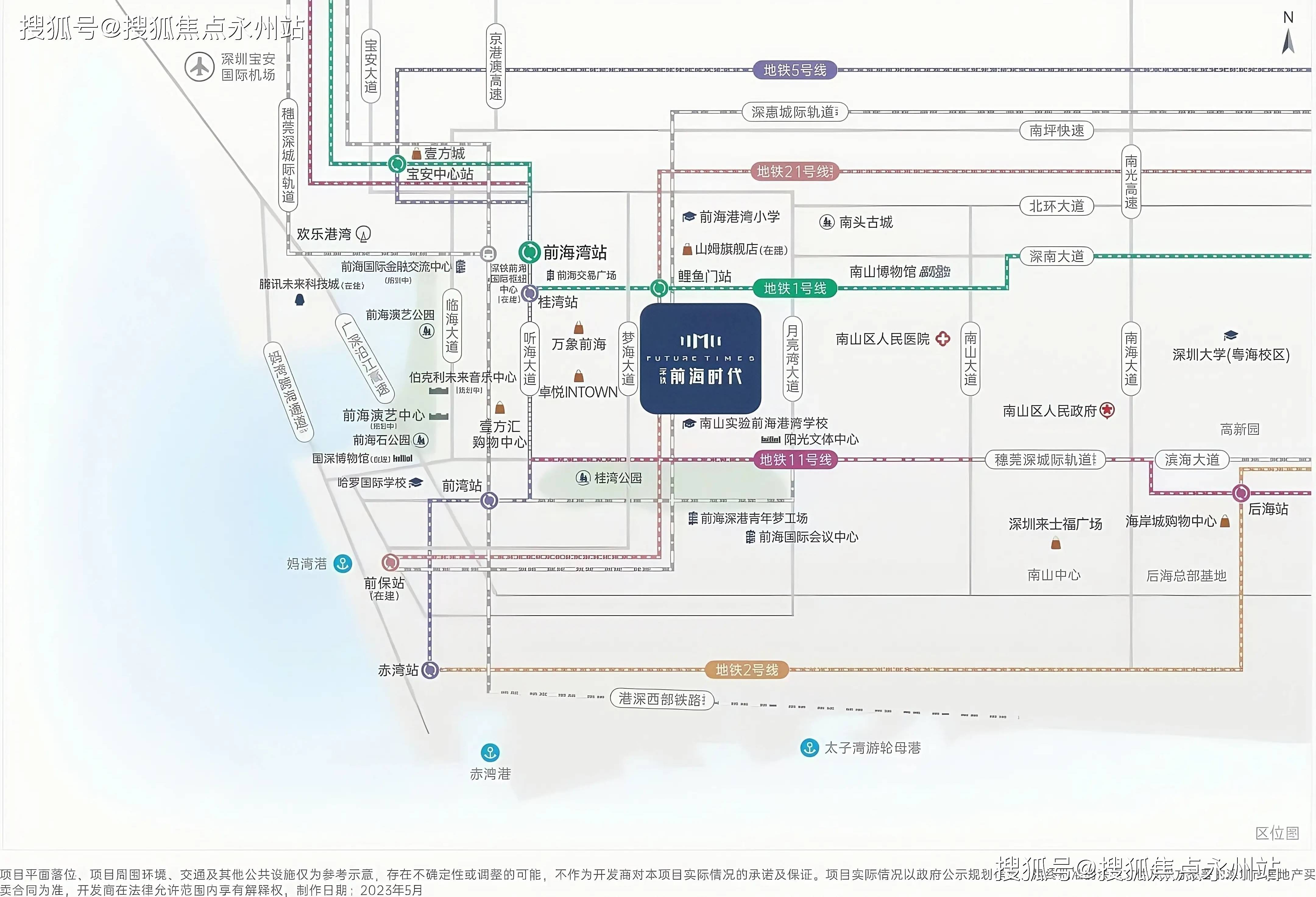 在教育配套方面,项目临近前海时代幼儿园、基金小镇幼儿园,2所幼儿园均已投入使用。根据2024年学区划分,项目归属于「南二外创新桂湾学校」和「南山实验前海港湾学校」。除了公立学校,前海还有不少国际学校如「国王」、「哈罗」等,若有外籍或港澳台籍身份也可以就读。