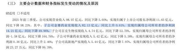 然而,2025年前三季度来看,金赛药业虽然保持营收正增长,实现收入82.13亿元同比微增0.61%,但归属母公司所有者的净利润却下降了49.96%至14.21亿元,利润下滑幅度远超收入增幅。这种营收微增、利润暴跌的现象,揭示出生长激素业务正承受前所未有的发展压力。