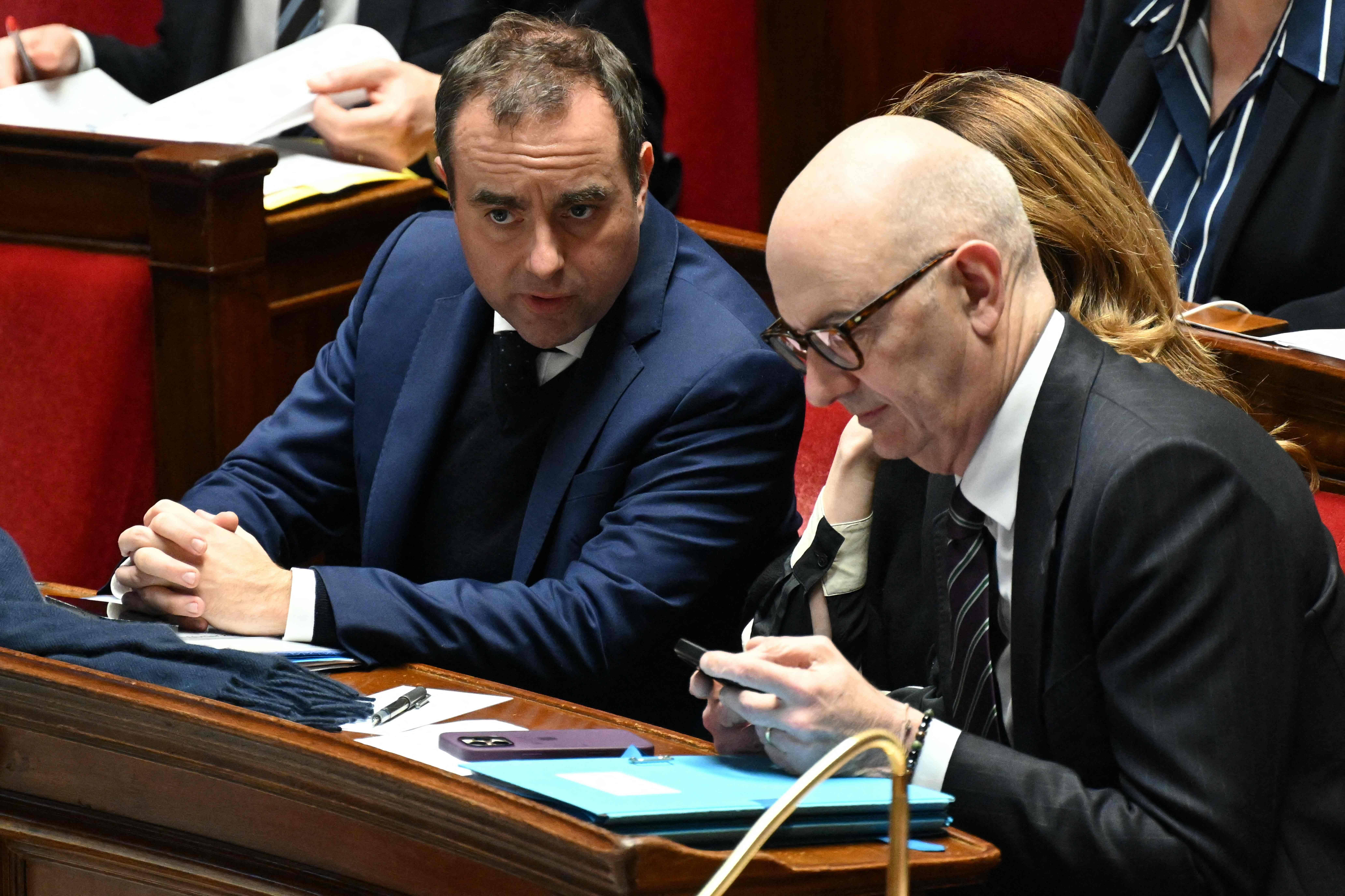 2月2日,在法国首都巴黎,法国总理勒科尔尼(右)出席国民议会会议。 新华社/法新