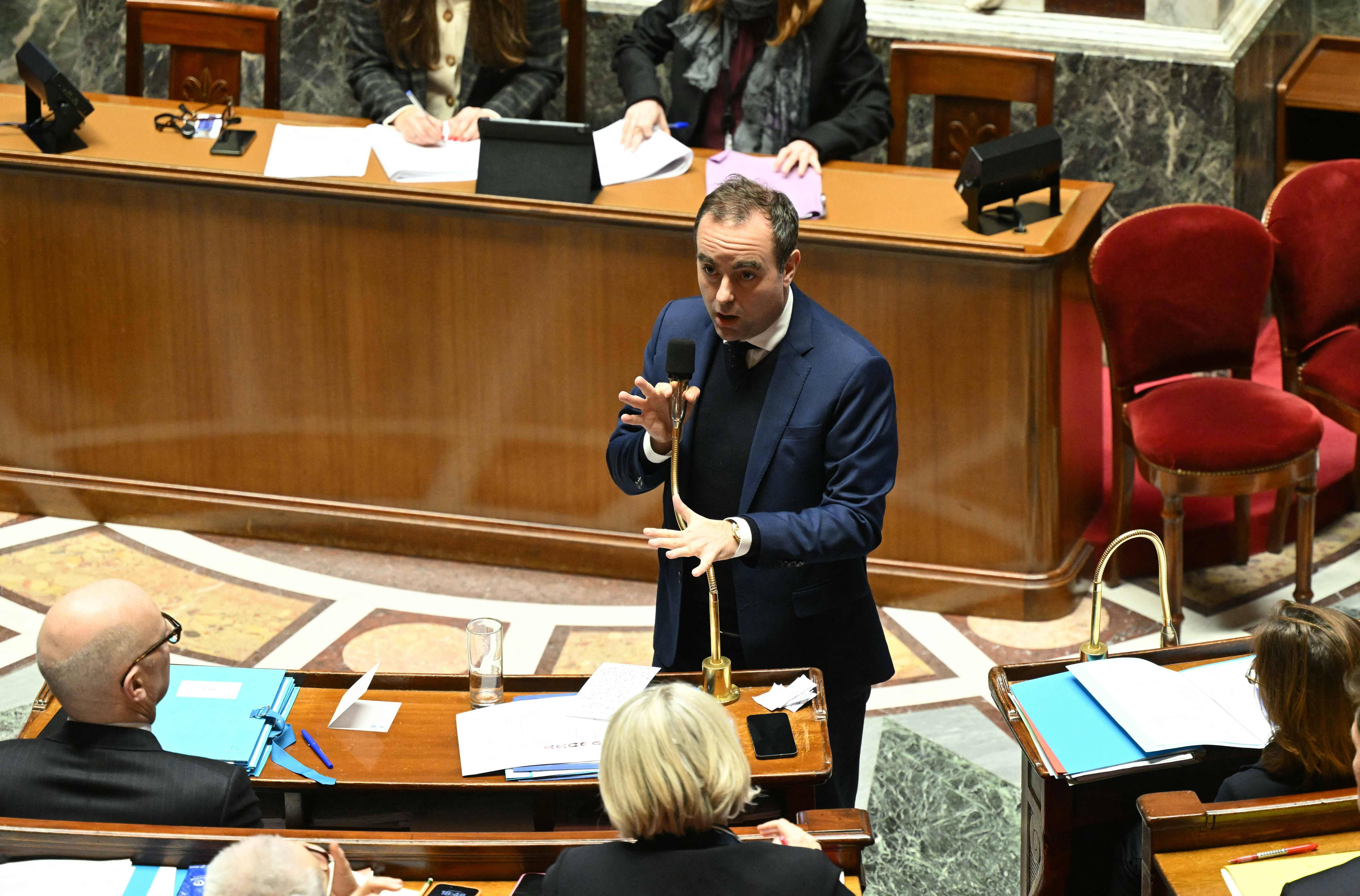 2月2日,在法国首都巴黎,法国总理勒科尔尼出席国民议会会议。 新华社/法新