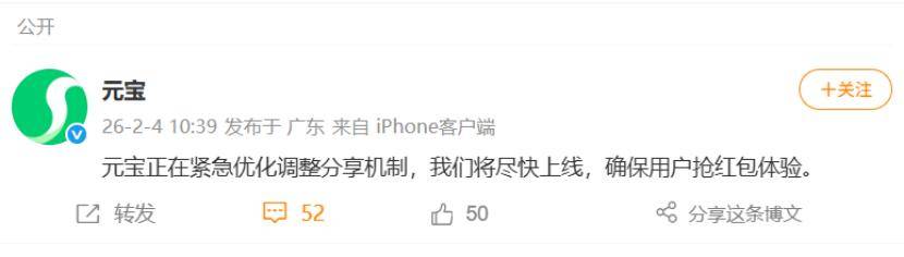 面对处置,双方迅速做出回应。微信方面明确表示,将持续监控春节营销活动,依据规则保障用户体验,不因产品归属而放宽标准;元宝方面则紧急表态,称正在优化调整分享机制,承诺尽快上线合规版本,并在互动中以 “微信说我太热情了” 的幽默表述缓解舆论压力。