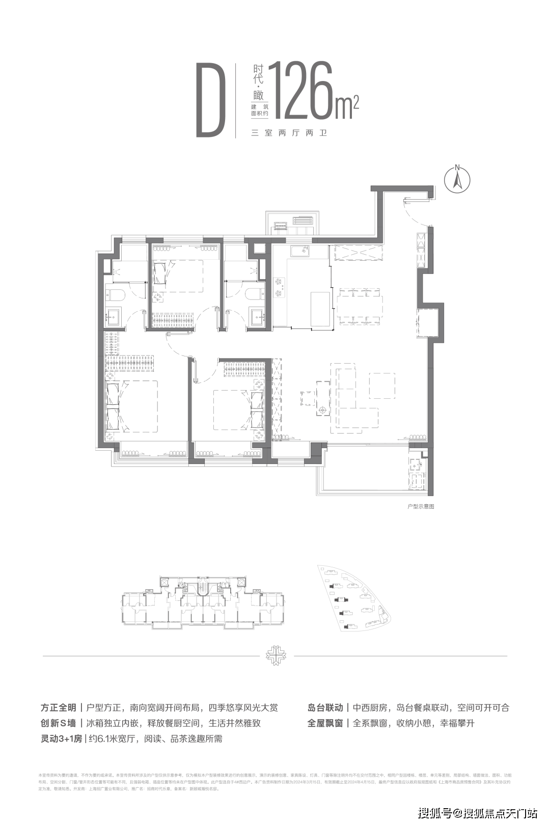 建面约126m²三房两厅两卫户型,南向3+1面宽横厅设计,让空间更加随心而变。主卧双台盆配置,用空间拥抱自然中的无限自在。