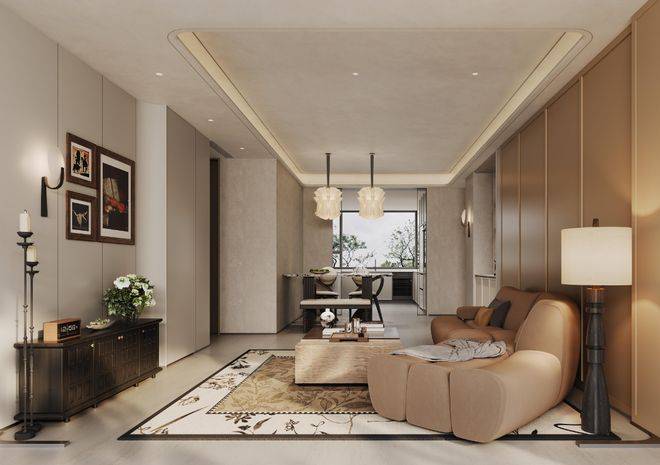 公区以海派为笔触,染现代之气韵,融汇成一方优雅生活的序章