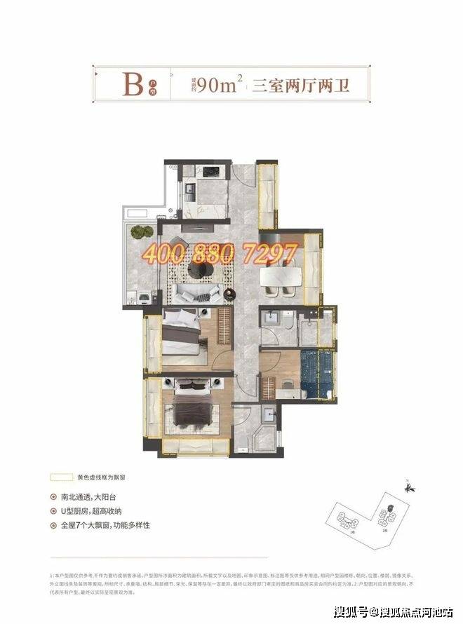 90㎡的三房两厅两卫,折后单价2.83-3.27万/㎡,折后总价259-296万/套