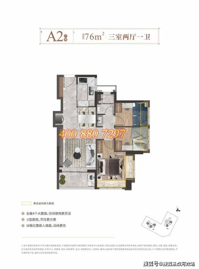 76㎡的三房两厅一卫,折后单价2.62-3.25万/㎡,折后总价206-252万/套