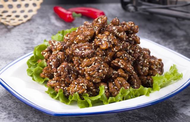准备核桃500克、白糖100克、清水50毫升、白芝麻适量。先将核桃放入烤箱中,以150℃烤15 - 20分钟,烤至核桃酥脆,取出晾凉。锅中加入白糖和清水,小火加热,不断搅拌,直到白糖完全融化,继续熬煮至糖浆冒小泡,颜色微微变黄。将烤好的核桃倒入糖浆中,迅速翻炒,使每颗核桃都均匀裹上糖浆。撒上白芝麻,继续翻炒几下,让白芝麻粘在核桃上。将炒好的糖霜核桃倒在油纸上,摊开晾凉,待糖霜凝固后,香甜酥脆的糖霜核桃就做好了。