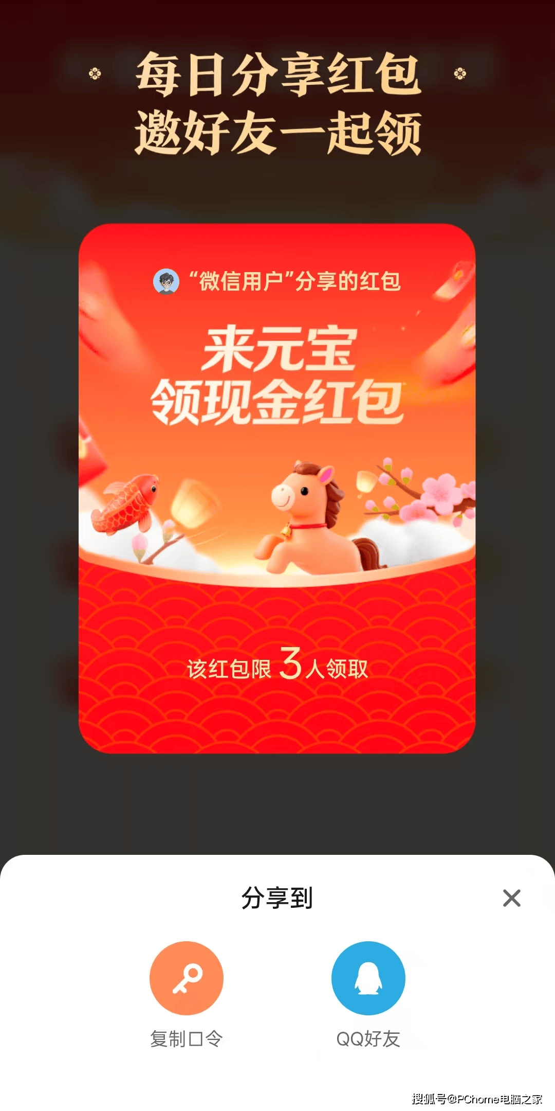 接近腾讯内部人士向《科创板日报》透露,优化调整后的元宝红包分享机制已启动,目前已紧急重新上线变更为“口令红包”。PChome在元宝点击分享按钮,发现其已去掉直接分享到微信的功能,替换为复制口令。