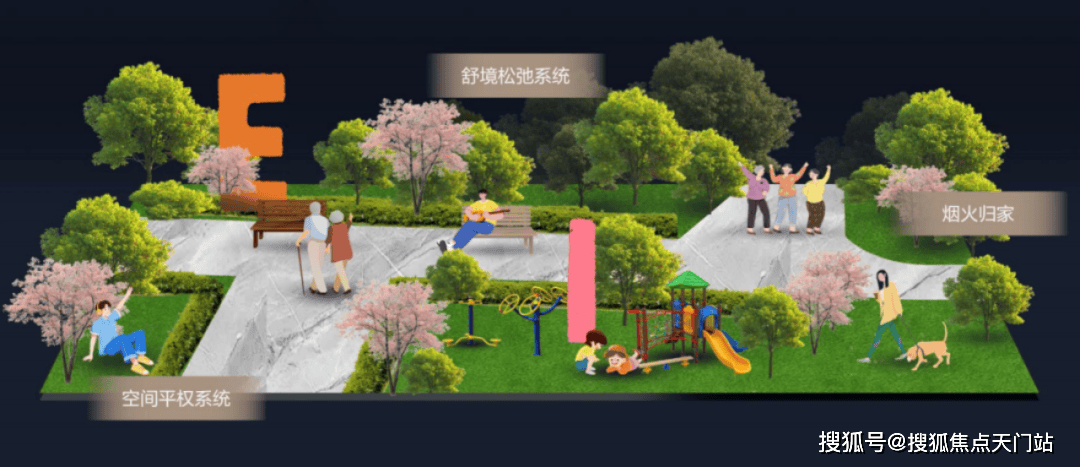 4、景观上,联发·时光新澍以“全场景松弛系统” 为核心,将景观划分为静音治愈、亲宠陪伴、自在休憩、街角松弛等四大功能场域,每一处场景都承载着特定的情绪价值。