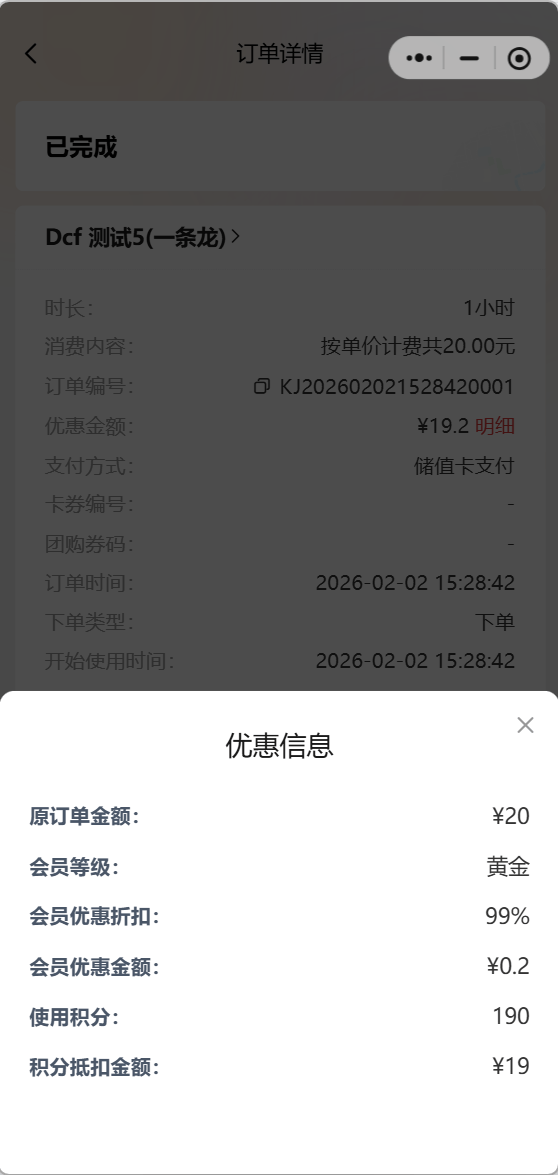 提前结束订单:若顾客已享受会员折扣,退款按折扣后金额计算,已使用的积分不予返还。