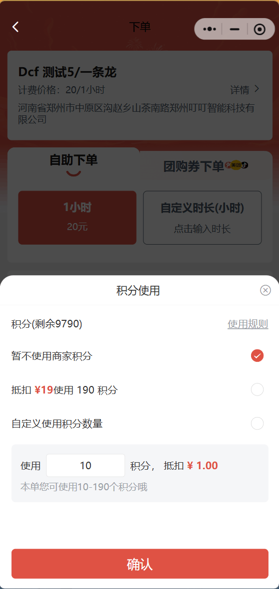 积分累加规则:按订单实际消费时长计算,不足1小时不兑换,订单结算后自动累加。