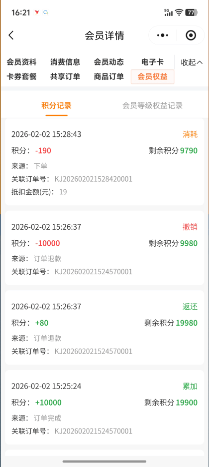 会员每笔积分变动一目了然,会员等级变化、权益享受记录全掌握。