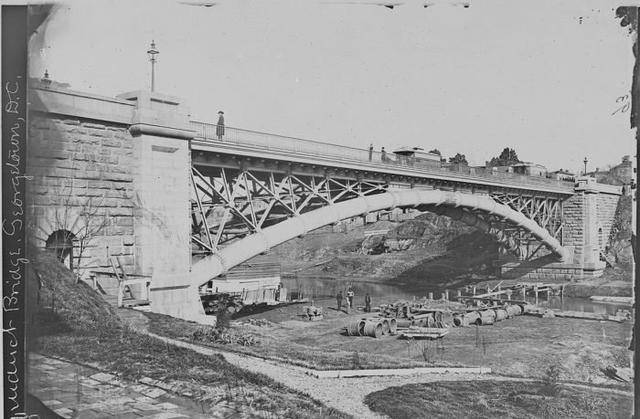 【图7】1862年,这座横跨波托马克河东支流的桥梁是华盛顿的一大交通枢纽。桥头伫立的房屋,和那辆刚刚穿行而过的马车,构成了一幅典型的19世纪中期的城市风貌图。 【图9】1863年,乔治城的这座石桥在照片中展现了其古老的身影。它于1843年竣工,是连接乔治城与华盛顿的重要交通枢纽,至今仍然是城市的重要遗迹之一。 【图10】这张照片展示的是1860年成立的史密森学会,作为美国政府资助的博物馆,它不仅具有半官方性质,也是美国最具影响力的文化机构之一。学会的资金来源于英国科学家詹姆斯·史密森的遗赠捐款,也正因如此,这座博物馆才以他的名字命名,成为了美国文化与科学的象征。 这些珍贵的历史照片,不仅保存了华盛顿的城市面貌,也映射出那个时代美国首都的生活与变化。通过这些镜头,我们得以窥见美国如何从一个年轻的国家成长为世界舞台上的强大力量。这些历史瞬间,让我们在今天回顾时,感受到了时间与历史的厚重感。