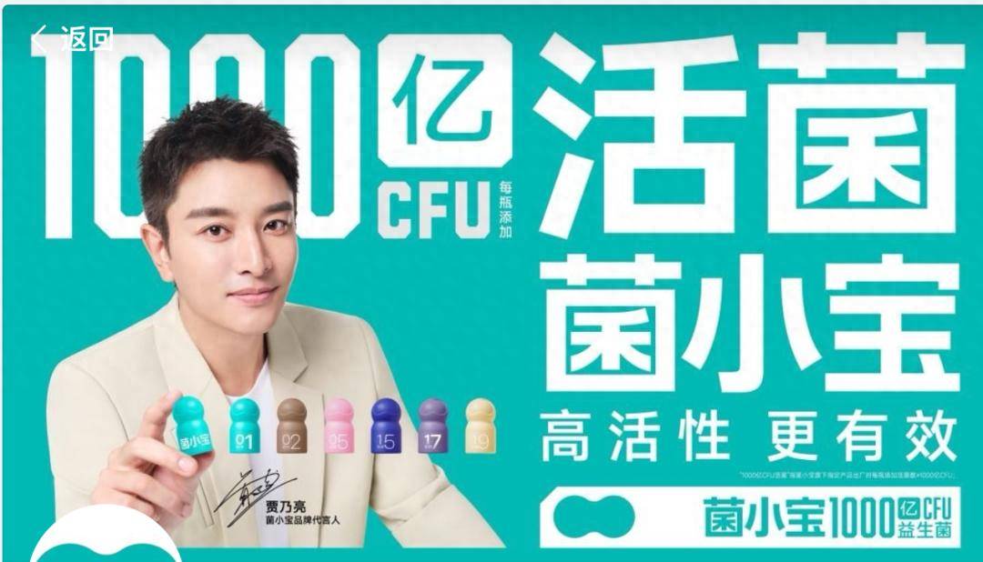 菌小宝官网显示,该品牌是专注于益生菌领域的品牌,公司总部设在上海市东方美谷大健康产业核心示范区,演员贾乃亮为品牌首位代言人,该品牌曾宣称获得“高端益生菌销量第一”市场地位认证,还被冠以“中国益生菌领航者”的称号。公开信息显示,菌小宝于2019年由母公司晨冠集团(始于2002年,最初专注乳品赛道)切入益生菌赛道,2022年推出太空系列益生菌产品,涵盖肠道健康、儿童成长、私护健康等多元场景,产品定位高端,直播间单价区间在399元至599元,单日食用成本约6至10元,且与贾乃亮、国岳夫妇、涂磊等头部主播深度绑定,直播带货成绩亮眼。