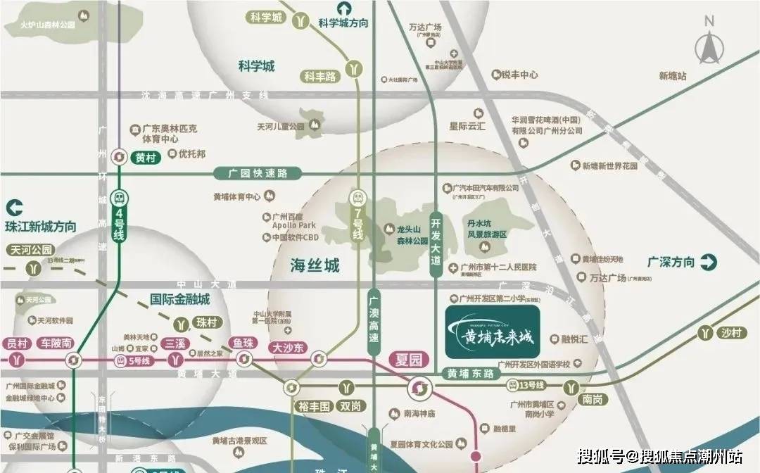 中交科城·黄埔未来城处于海丝城创新走廊的核芯位置,坐落于将军山数创园内,目前将军山数创园(一期)项目,已被列入了2025年广州重点项目,决定了项目不单纯依靠“外溢买家”输血,而是以产城融合的形式出现。