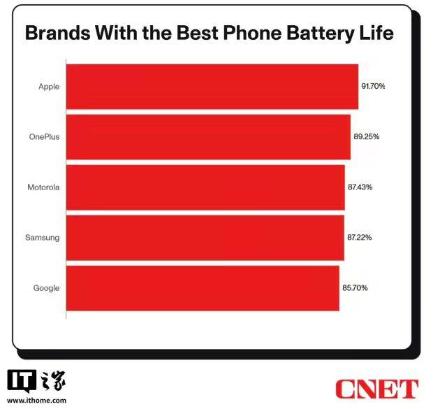 品牌方面,苹果和一加是目前续航表现最优秀的手机品牌。