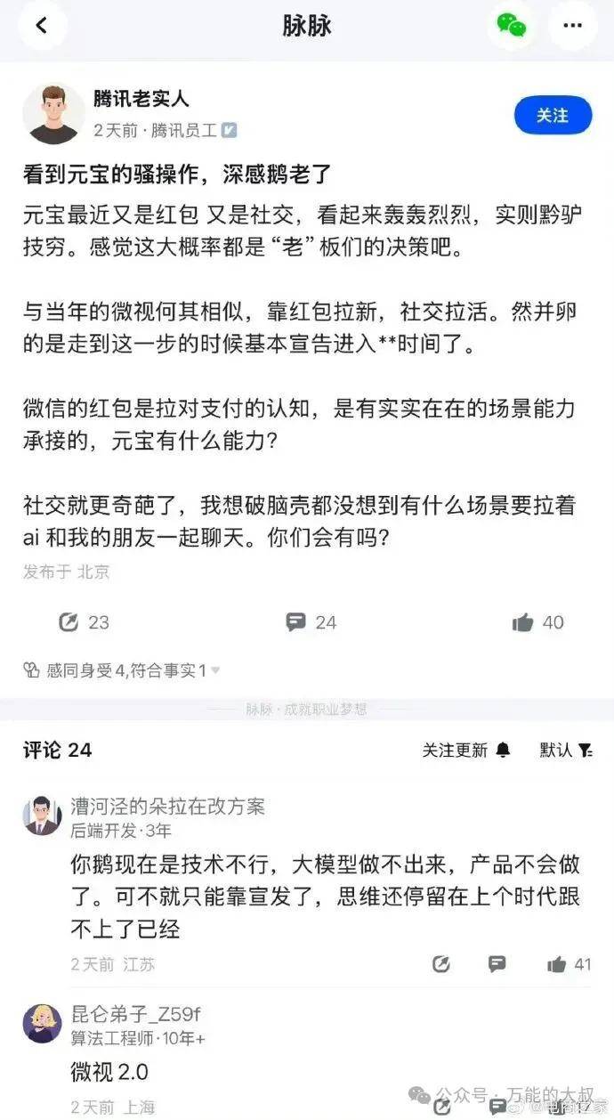 微信和元宝的这场“苦情戏”,到底要御什么敌呢?当然是千问等AI诸君。