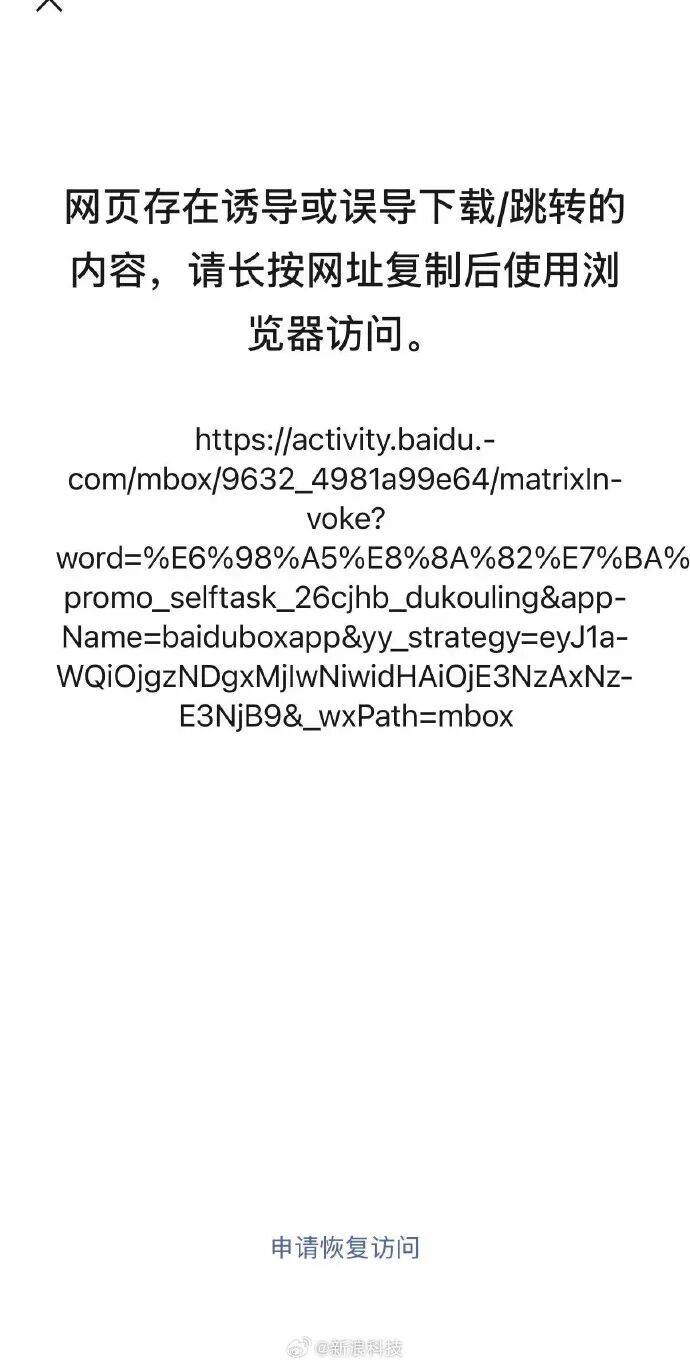 2月5日消息,继微信封杀腾讯元宝红包链接之后,百度文心助手红包分享链接也已被微信屏蔽,页面显示网页存在诱导或误导下载/跳转的内容,需要跳转第三方浏览器访问。