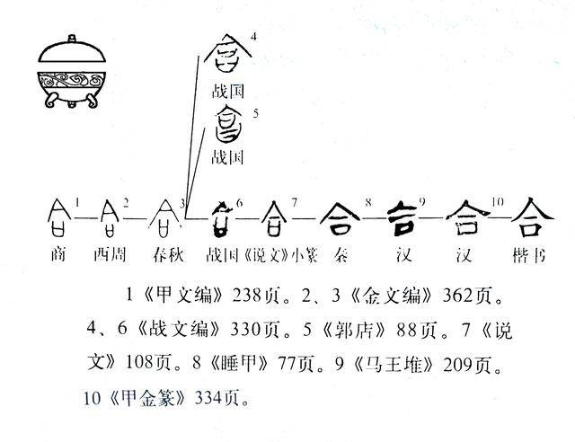 实际上,合是象形字。来看一下字形演变: