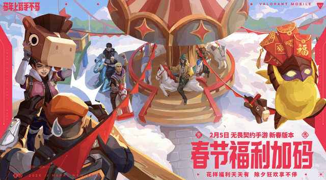 新的一年,新的战场,新的伙伴。当陶喆的歌声在瓦秀大厅回荡,当钢锁的断魂索道在日落之城收割残局,当亿元奖池等待幸运儿的降临——这个春节,《无畏契约手游》已经准备好与全体玩家一起,马力全开,新春大吉!
