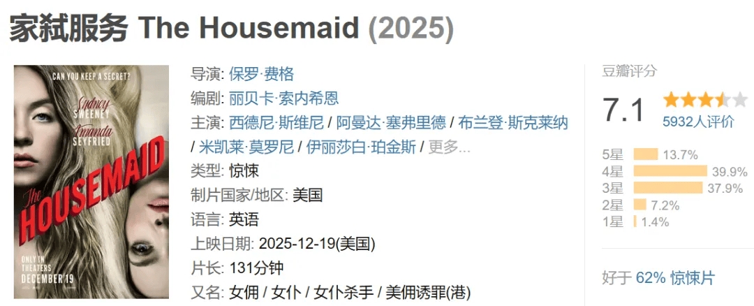 本片上映后,票房口碑都不错,在一众惊悚片中获得了豆瓣7.1的评价。