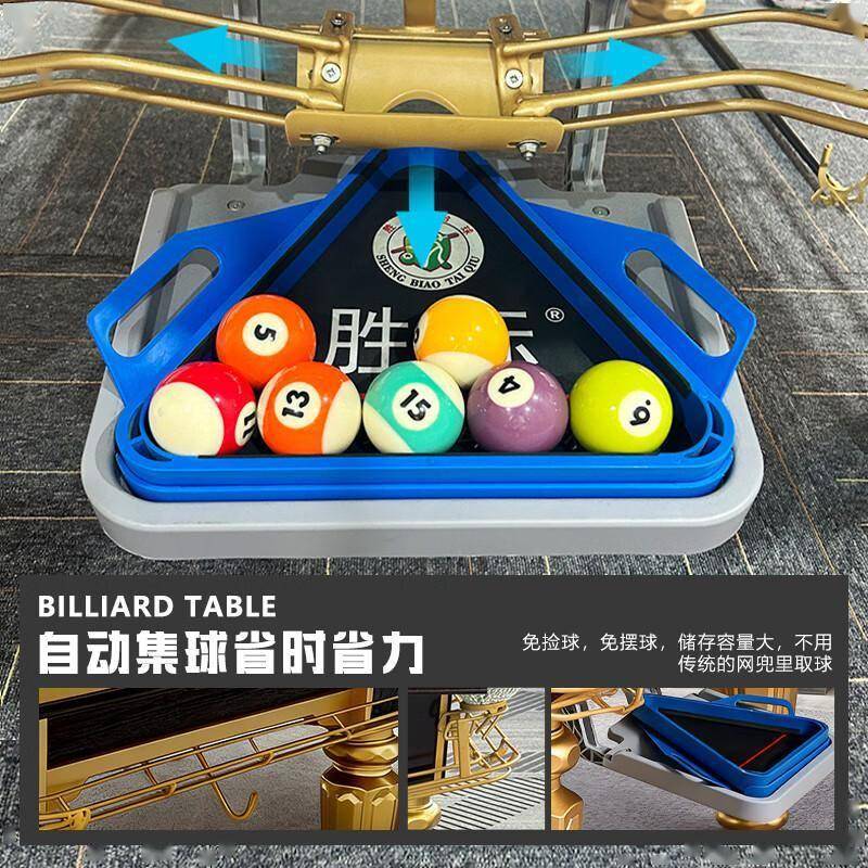 这款台球桌采用标准中式黑八规格,桌面尺寸为2.8米×1.4米,既不会占用过多空间,又能提供足够的击球体验。桌体采用优质实木框架,搭配高密度板桌面,确保稳定性的同时,也延长了使用寿命。