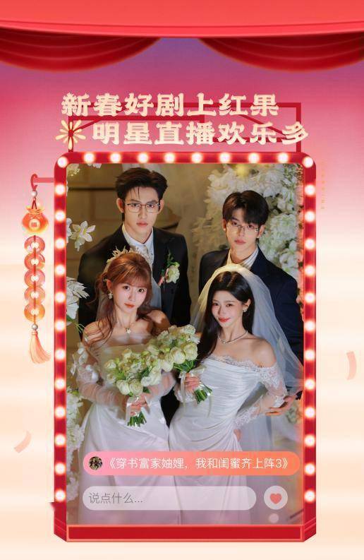 春节期间,红果短剧还将带来20余场直播,《穿书富家妯娌,我和闺蜜齐上阵3》《你藏于星夜》等十余个剧组主创、超30位明星演员将直播分享拍摄趣闻、现场演绎剧中片段,并与观众实时互动,回应弹幕提问。
