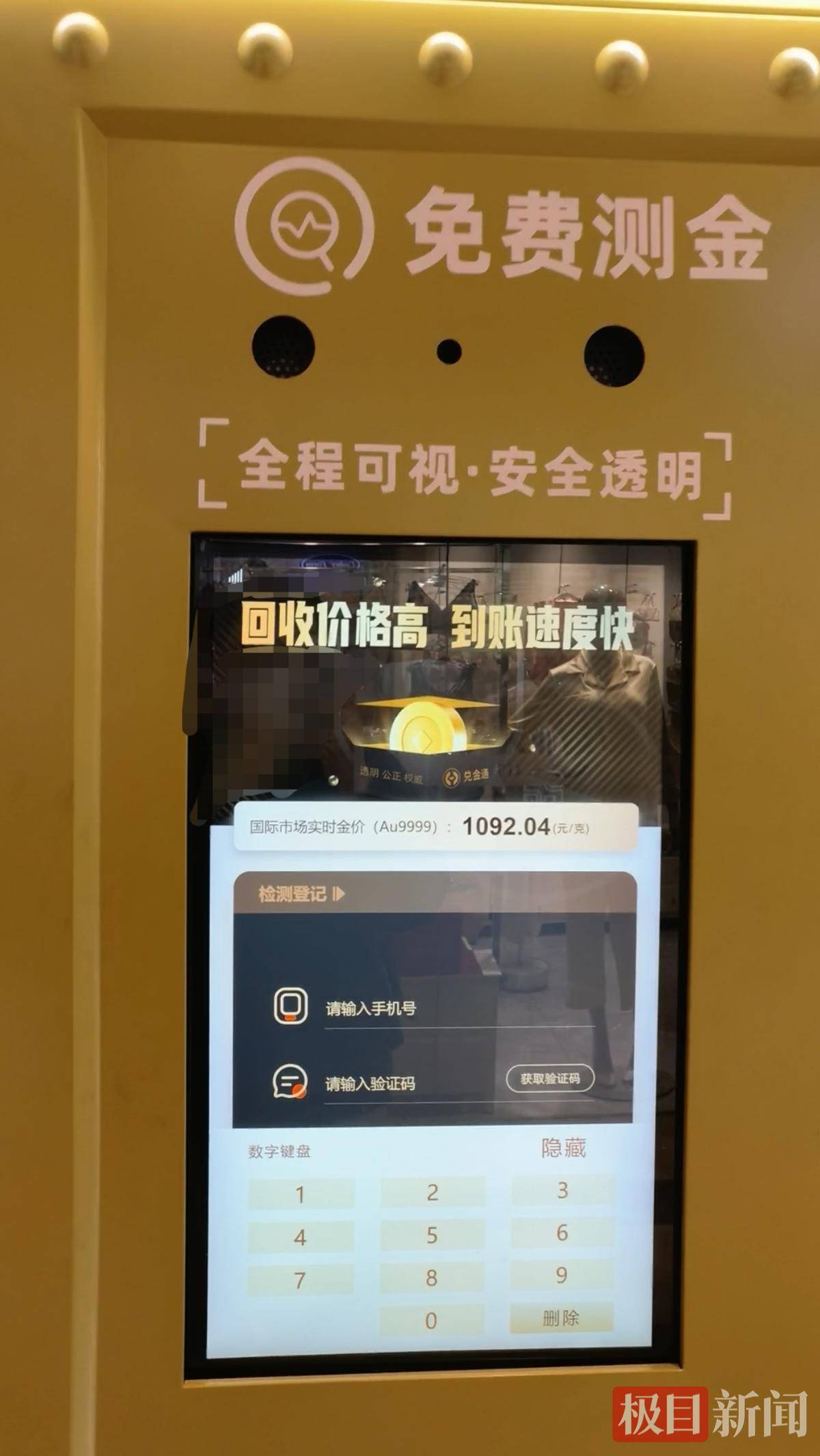 公开信息显示,近年间,国内多座城市出现了提供黄金回收服务的ATM机器。用户只需将黄金放入智能机器中,系统便能自动识别,评估黄金的纯度和重量,完成熔炼回收,快速付款。机器检测提供的数据,包括实时金价、样品重量、样品含金量、样品价值、服务费及回收价格等。