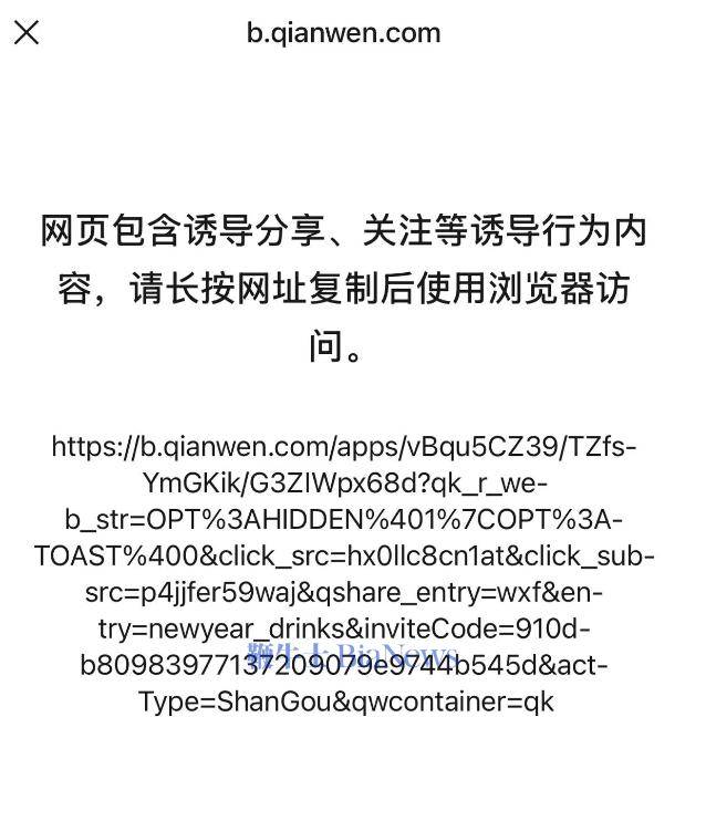 界面显示,网页包含诱导分享、关注等诱导行为内容,请长按网址复制后使用浏览器访问。