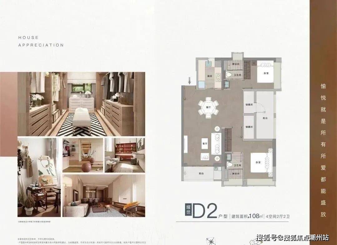 108㎡平层的户型也是有园景加持,主次卧均有飘窗设计,阳台加储藏间可分可根据家庭不同需求改造成大三房或小四房。