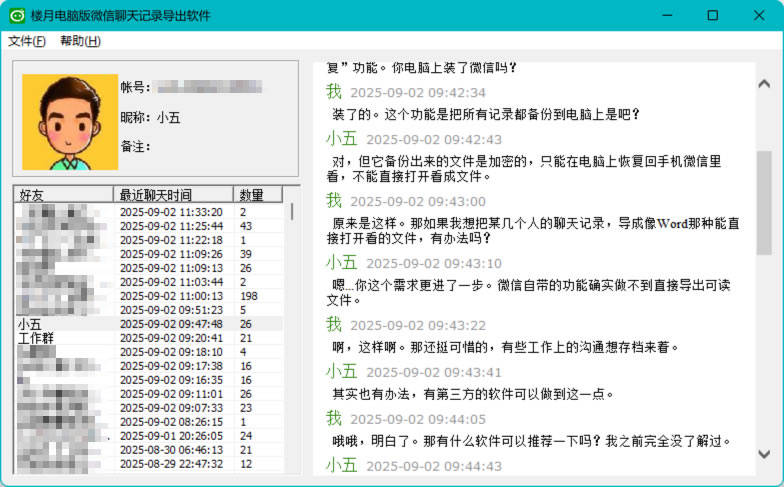 点击顶部菜单栏「文件」→「导出聊天记录」,可将记录导出为四种不同文件格式。