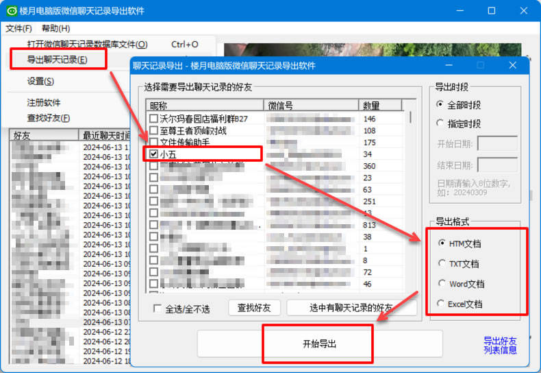 5.选择聊天对象并导出