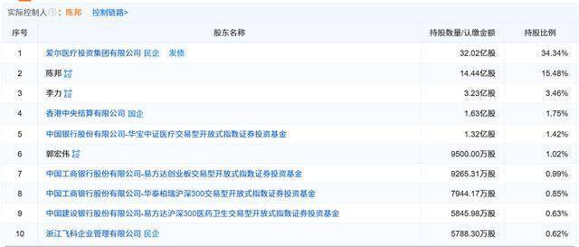爱尔眼科作为一家独立的上市公司,拥有规范的治理结构和相对透明的财务披露。其控股股东是爱尔医疗投资,持股比例约为34.34%。