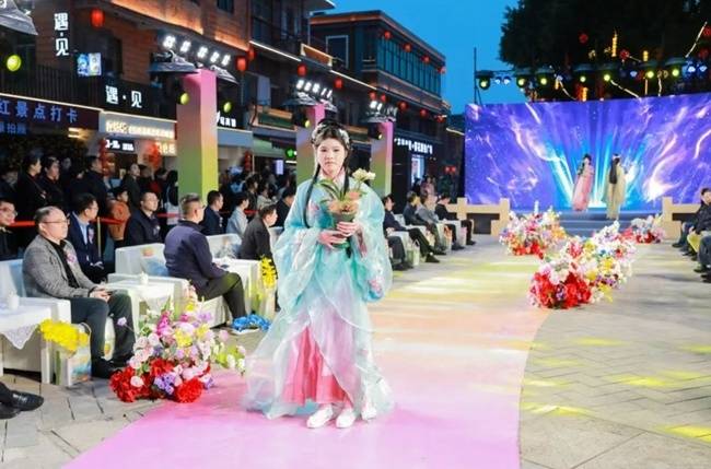 启动仪式后,一场别开生面的“古桥映喜”时尚风采秀成为全场焦点。大秀以“人生四喜”为脉络,通过沉浸式走秀、场景化展示及时尚化演绎,巧妙串联起洛江农业特色、归侨文化、婚嫁产业、文创产品等四大领域,形成“文化展示—产业联动—消费转化”完整闭环,精准触达追求文化体验与品质消费的多元人群,令人耳目一新。