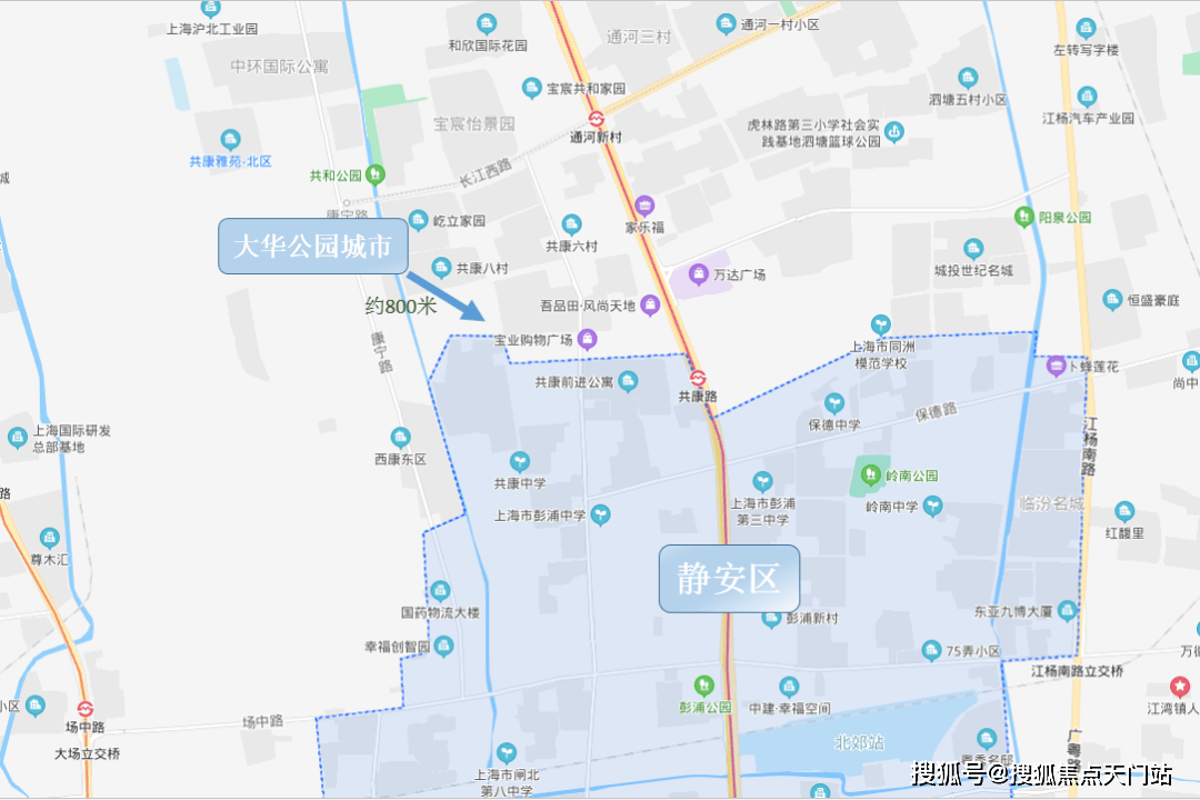 从地图上看,该地块距离静安区的直线距离只有800米,距离大宁核心区域仅约5公里,不仅离大宁国际商圈近,周边还有宝山万达、大华商圈等大型商业配套。