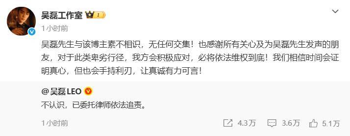 1月19日,吴磊本人回应:不认识,已委托律师依法追责。