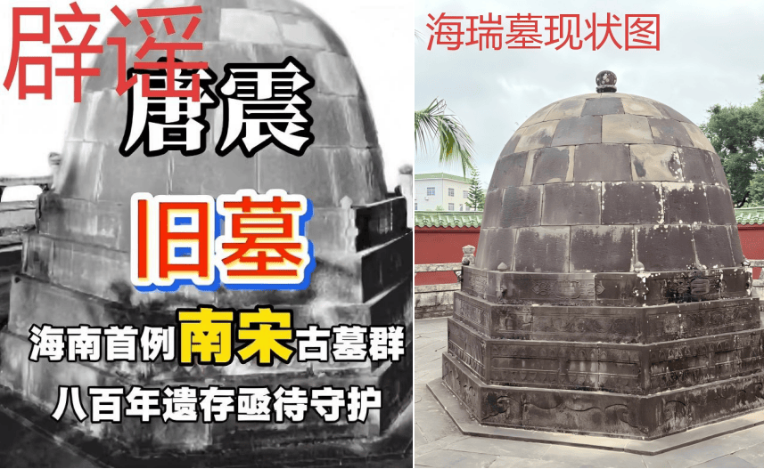 部分网络信息中使用的所谓“唐震旧墓”图片,经我局现场踏勘并与档案资料比对核实,实为位于海瑞文化公园内的全国重点文物保护单位海瑞墓,与唐震墓无关。