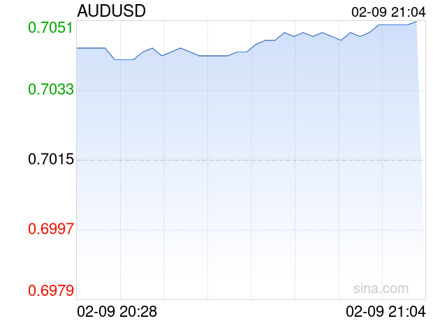 新浪外汇消息2026年02月09日,截至21时04分,外汇市场上澳元兑美元汇率突破1澳元兑换0.7051美元。涨幅为0.5132%