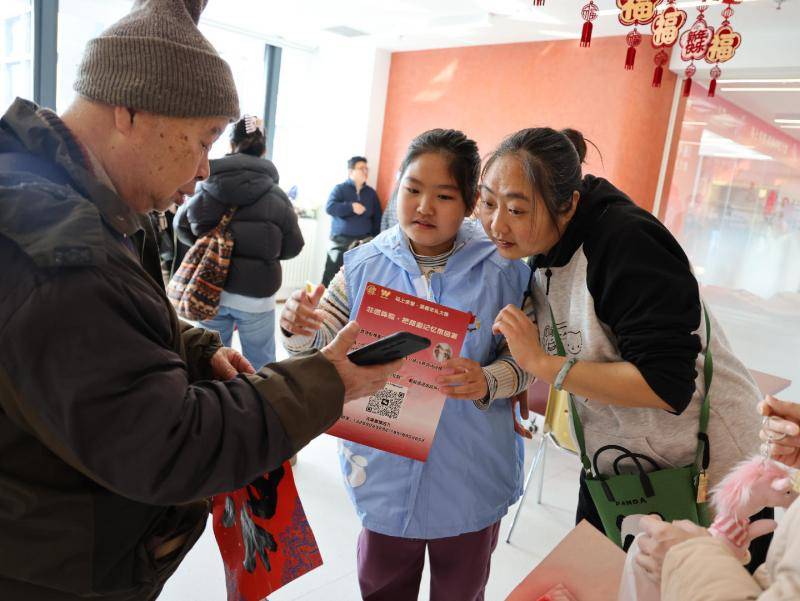 活动深度融合非遗体验与便民服务,提升了市民参与感与获得感。吹糖人、剪纸等摊位吸引众多家庭驻足互动,让传统非遗技艺在亲身实践中得以传承。文化志愿者现场手书春联、“福”字等,市民扫码关注公众号即可免费领取,将传统年俗融入现代生活。此外,驻街企业提供的反诈宣传、手机贴膜等便民服务广受欢迎,生动诠释了“永外有我”共建共享理念。