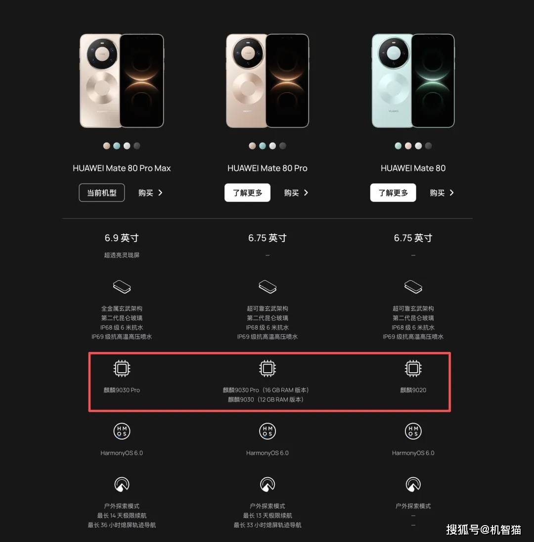华为最新的Mate80系列也是如此,只有Mate 80 Pro Max和Mate80 RS非凡大师才用上了最新的麒麟9030 Pro处理器,Mate80 Pro采用的是混搭麒麟9030和麒麟9030 Pro,而Mate80标准版更是沿用老款的麒麟9020。