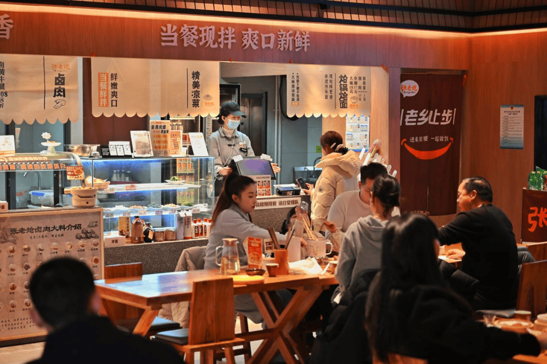 在张老炝方城炝锅烩面店内,店内年味与烟火气交融,食客满座,一碗碗鲜香的烩面被端上桌。“带家人来吃碗烩面,用河南消费券立省了20块,最后共计花了不到一百,吃得又便宜又饱。”刚结完账的李先生说。